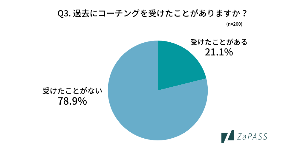 コーチングの利用経験について尋ねたところ、「受けたことがある」が21.1%、「受けたことがない」が78.9%という結果になりました(n=200)。