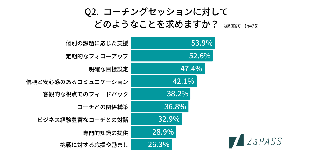 コーチングセッションに求めることは「個別の課題に応じた支援」が最多