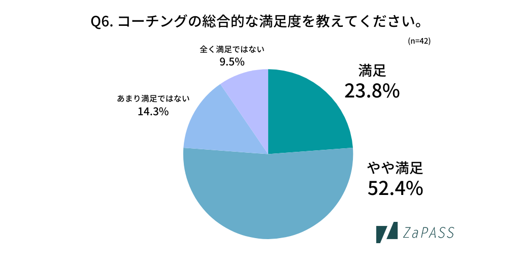 コーチングを受けたことのある人に、コーチングの総合的な満足度について尋ねたところ、合計78.2%が「満足」「やや満足」と回答しました(n=42)。