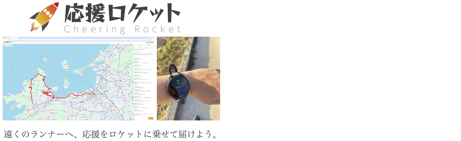 福岡マラソンを走る人と応援する人:「応援ロケット」