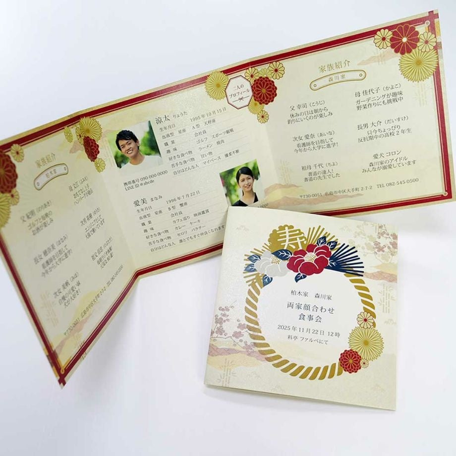 顔合わせしおりはそんな気持ちにさせてくれる家族の絆を紡いだ記念に残るアイテムだからこそ、手元で保管しやすい紙媒体で準備することをおすすめいたします。