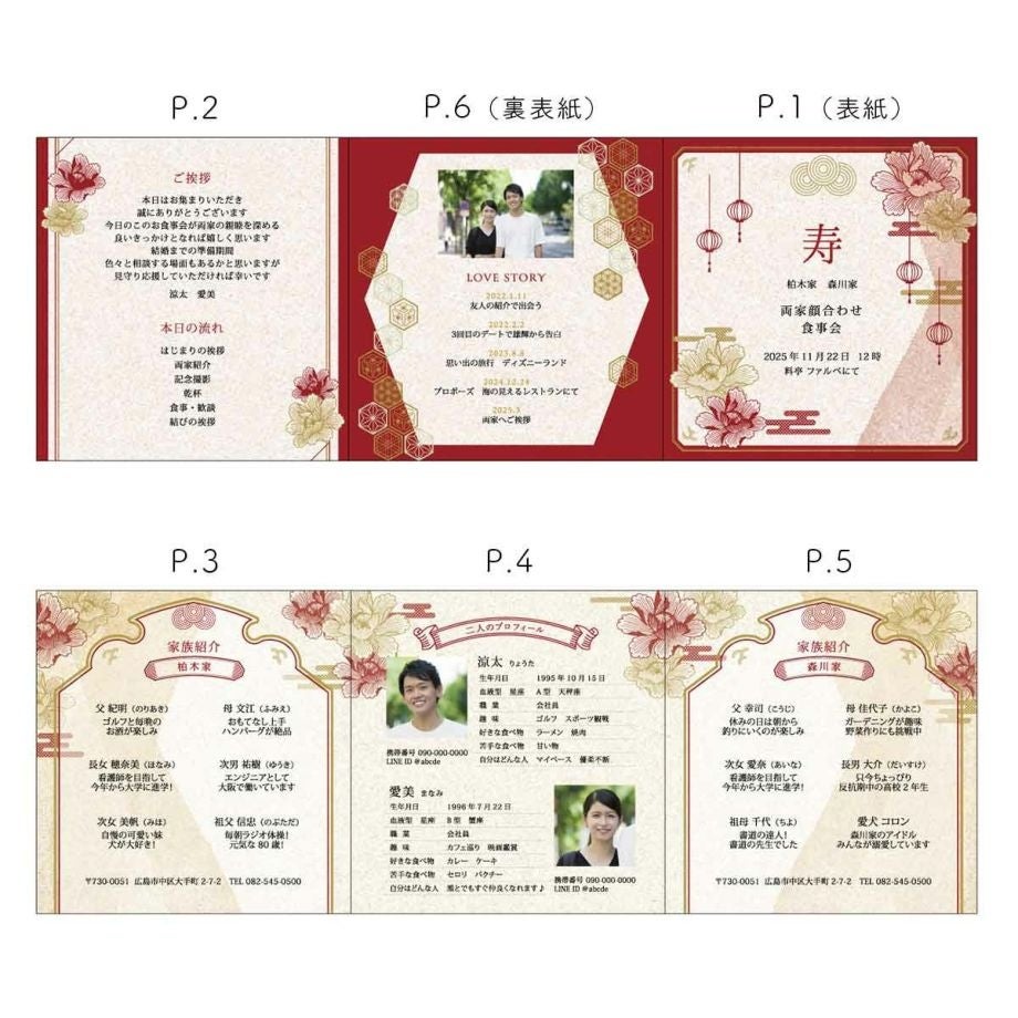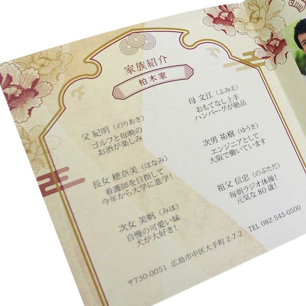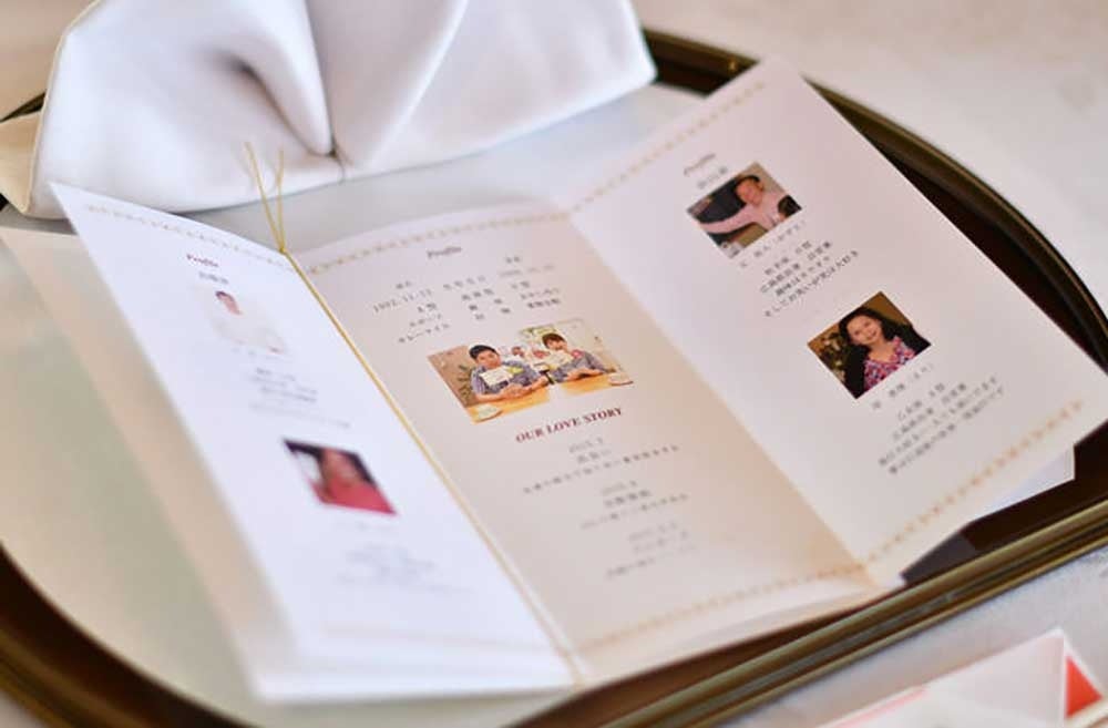 最近は、結納よりカジュアルな雰囲気の顔合わせ会が主流ではありますが、ホストである新郎新婦からのおもてなしのひとつとして「顔合わせしおり」を形に残すことで、心のこもった贈り物のひとつにして欲しいと思っています。