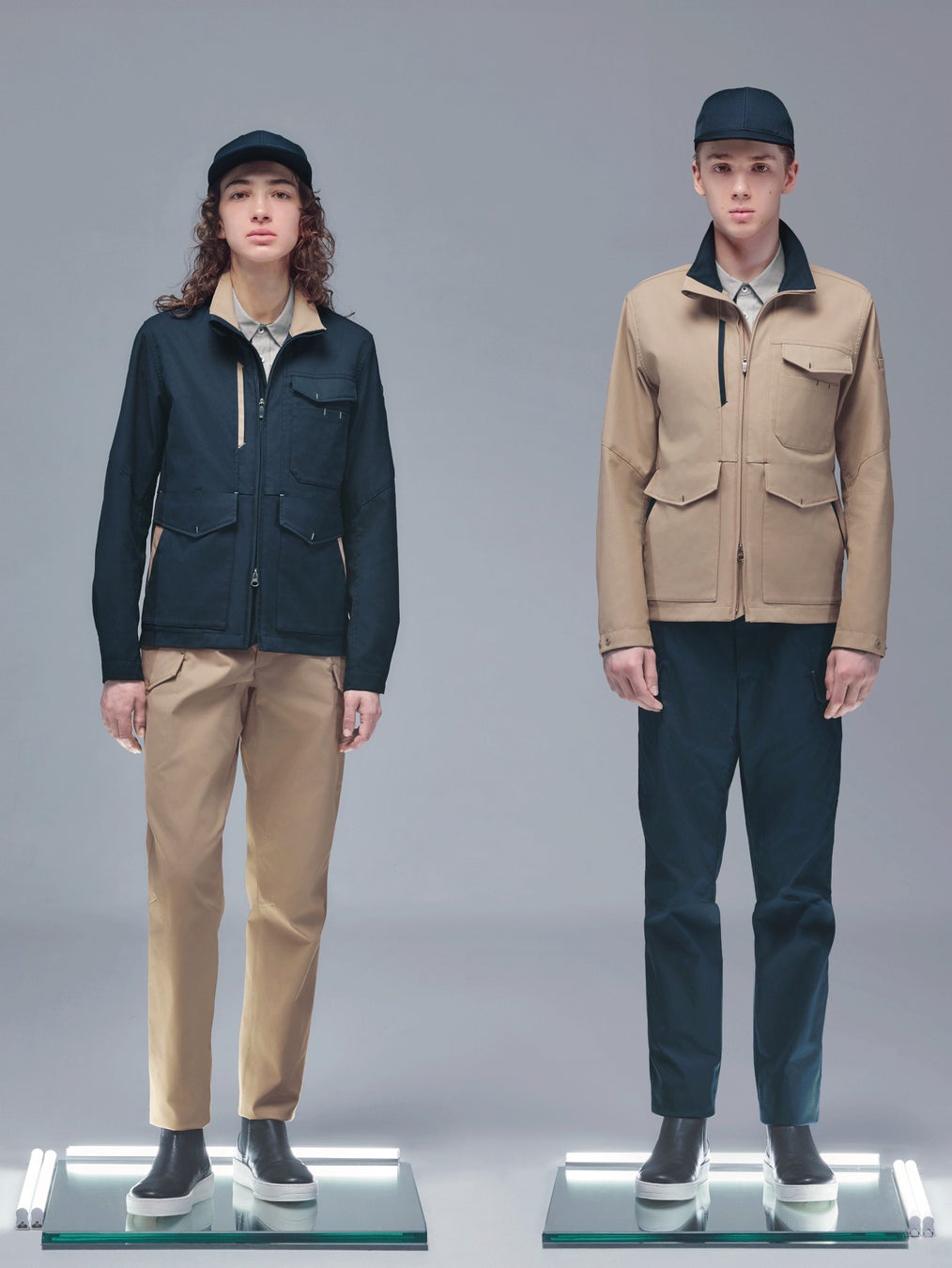 今回の展示会では、ネクタイ風のデザインやポケットチーフ風のデザインでフォーマルな印象を演出するシャツ・ベストやネクタイを重ね着しているようなデザインを施したポロシャツ・多機能ポケットや帯電糸入りの生地で安全面にも優れたブルゾンを展示。