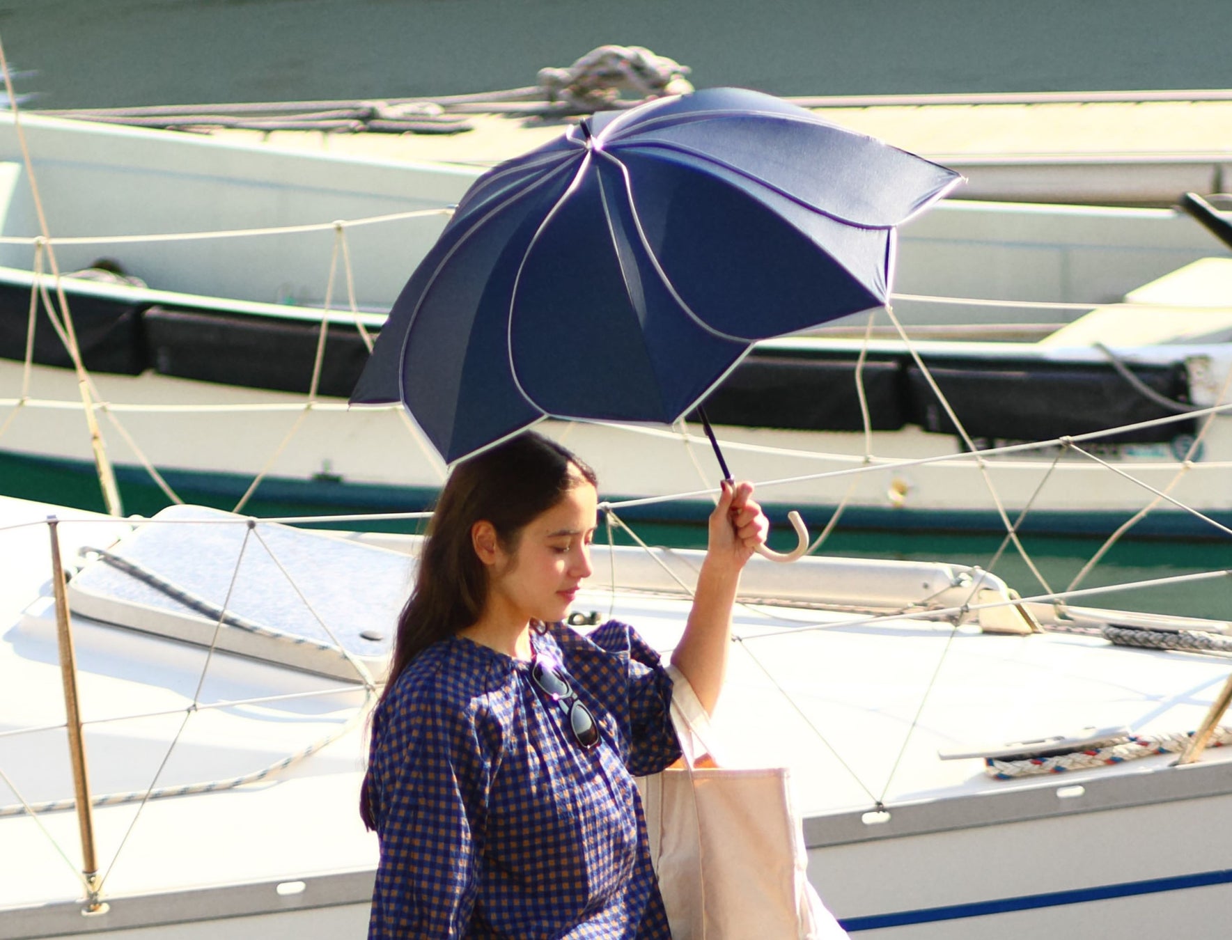 エレガントなものからベーシックなものまで多彩なデザインを揃え、その中でも新たに発売する日傘はフラワーモチーフをプリントではなく、「傘そのもので花を表現したい」という想いと「真夏の強い日差しの中でも快適に過ごしてもらいたい」という想いから生まれました。デザイン性のみならず、UVカット率99.9%以上、遮光率99.9%以上と機能性にもこだわりました。