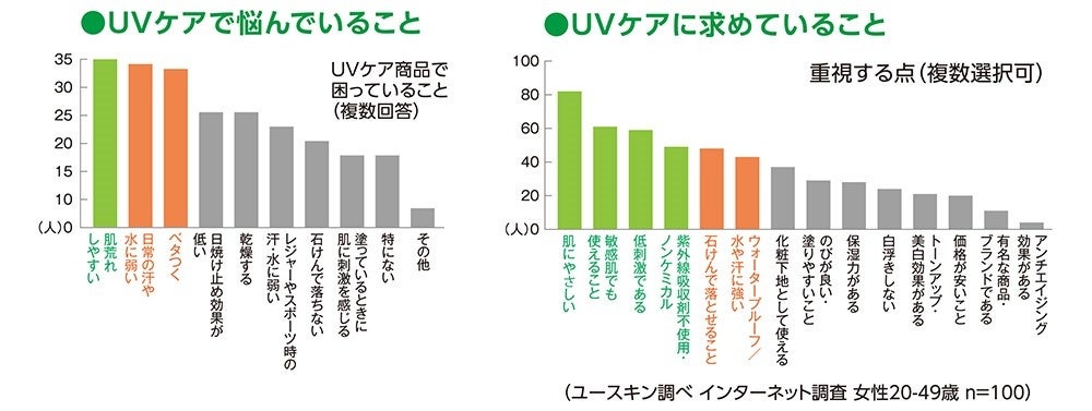 一方で、肌トラブルの原因となる紫外線からしっかりと肌を守ることは重要です。同アンケートでは、敏感肌の方はUVケア製品を選ぶ際に、「肌へのやさしさ」に加え「機能」も重視していることがわかりました。「ユースキン シソラ UVミルク EX」は、肌にやさしい低刺激処方でありながら、SPF50+、PA++++、汗や水に強い独自処方です。海やレジャーなど強力な紫外線から、外部刺激に敏感なピリピリ肌を守ります。