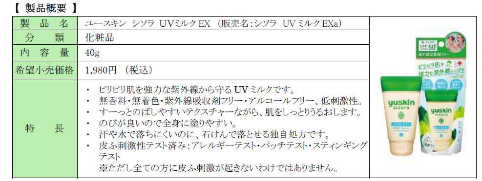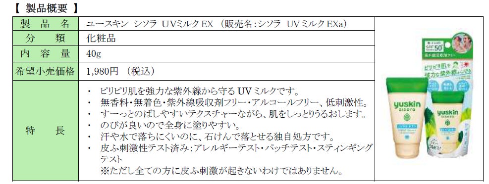 外部刺激に敏感なピリピリ肌を、強力な紫外線から守る「ユースキン シソラUVミルクEX」新発売