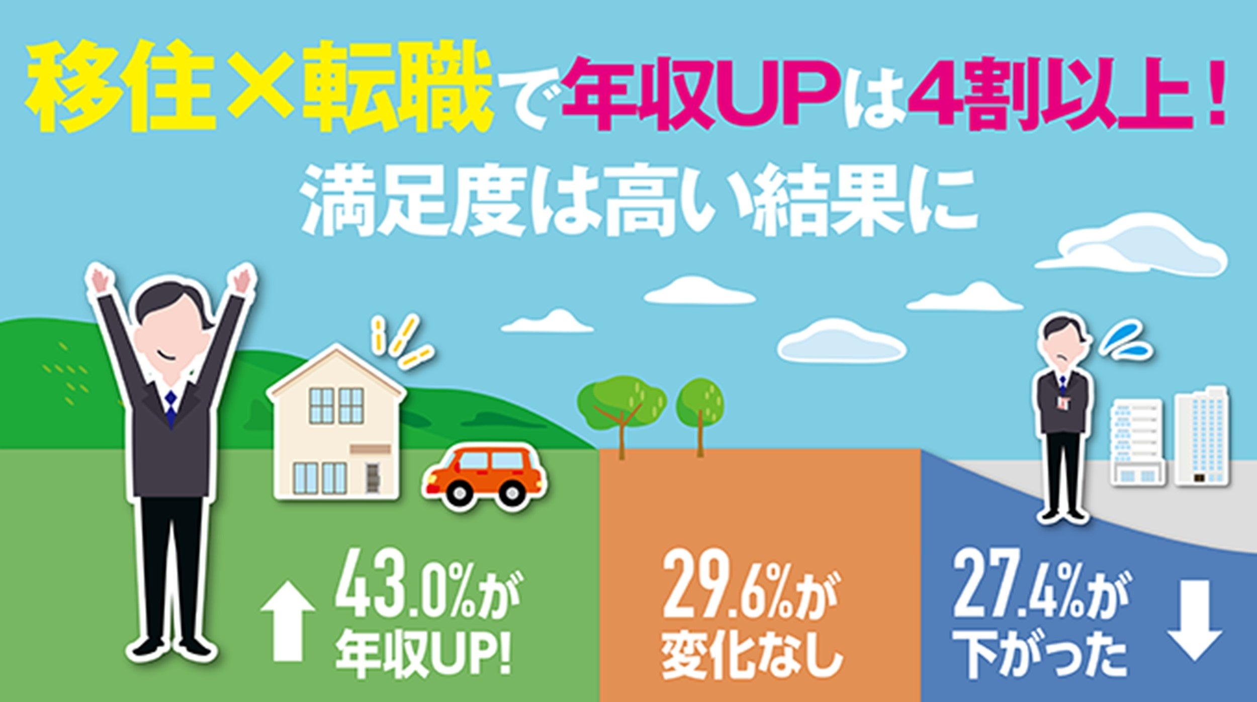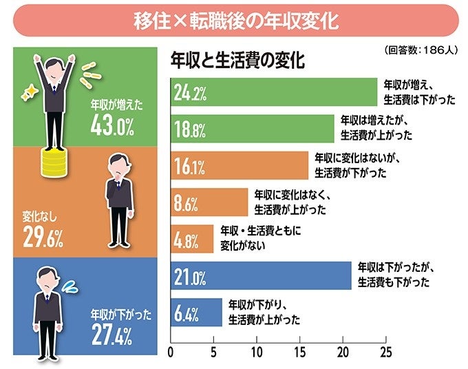 気になる移住&転職後の年収の変化。年収増が43.0%という結果に