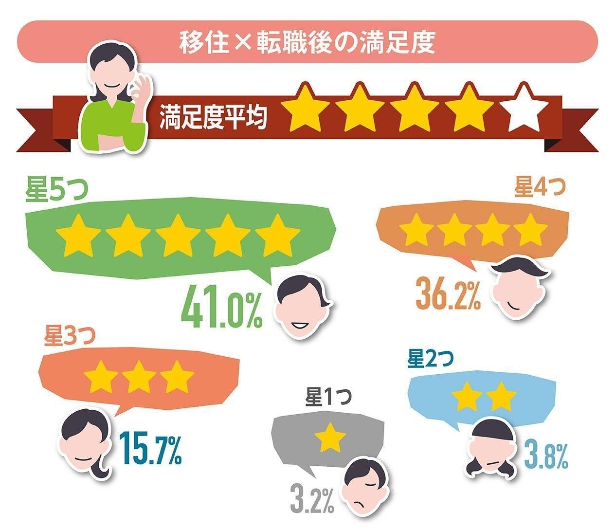 移住経験者の平均満足度は星4つと高い