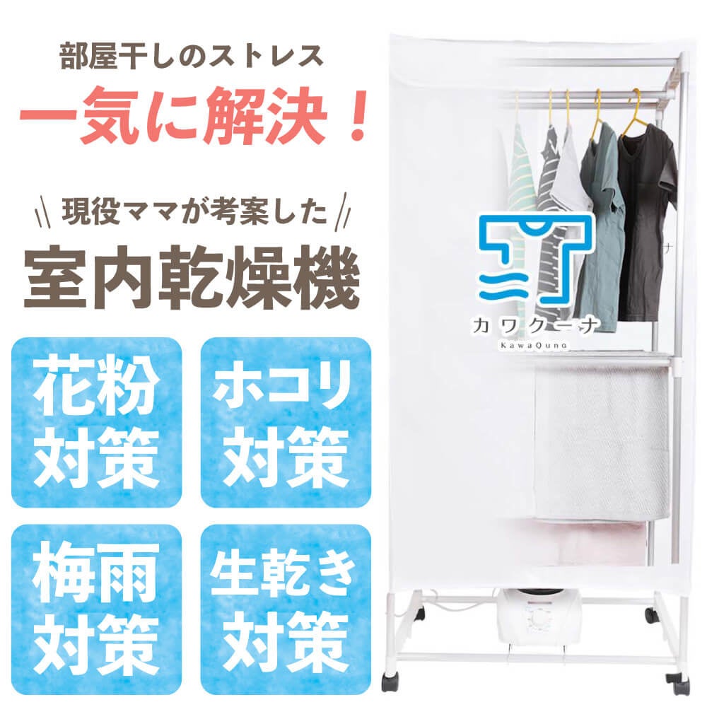 部屋干しのストレスを解決する!現役ママが考案した、組み立て簡単&省スペース&省エネの容量UPの新型BOXタイプ衣類乾燥機「カワクーナ」がYahoo!ショッピングでお得に購入可能!