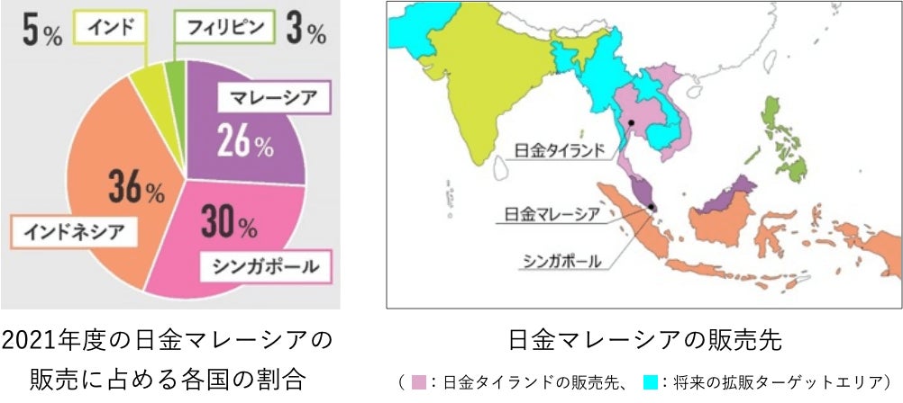日金マレーシアはジョホールバルを拠点として、マレーシア、シンガポール、インドネシアを中心に冷間圧延ステンレス鋼帯を供給しています。また、インドを最大の拡販ターゲット国として、医療関連、自動車関連、メタルマスク(半導体製造等)をメインに拡販活動に取り組んでいます。今後は日金タイランドと連携してカンボジアやラオス、ミャンマー、パキスタン、バングラデシュなどをターゲットに販売エリアの拡大を目指します。