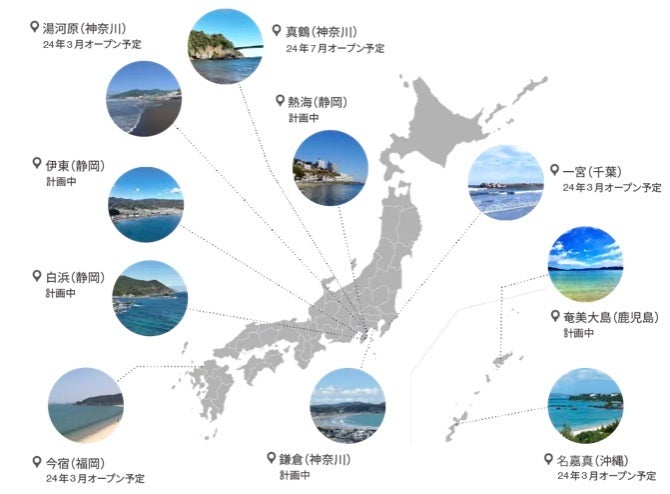 一宮、今宿、名嘉真、湯河原の4つのエリアからスタートしております。今後は鎌倉、熱海、秋谷、伊豆白浜、伊東など、続々と新しい拠点が増えていきます。