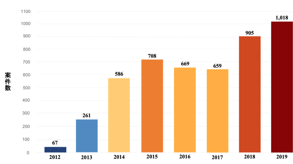 台湾でのクラウドファウンディングを通じた資金調達の市場規模は、2012年より年々拡大し続けています。2021年には市場全体で、年間2,000件を超える案件を取り扱うなど、総資金調達額は日本円でおよそ124億円を誇る市場へと成長しています。