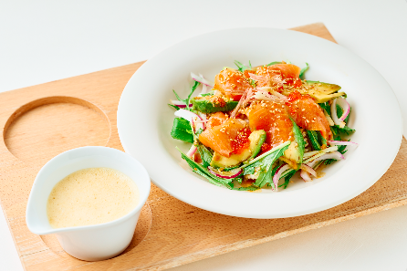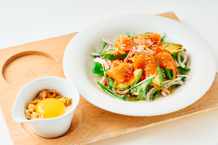 トラウトサーモンとアボカドのポキ丼 ネバネバーダ添え