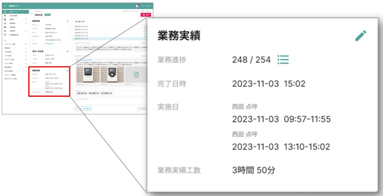具体的な点検項目や作業タスクに対応する管理単位です。これにより、日程調整、結果の登録、進捗管理などを一元管理できます。