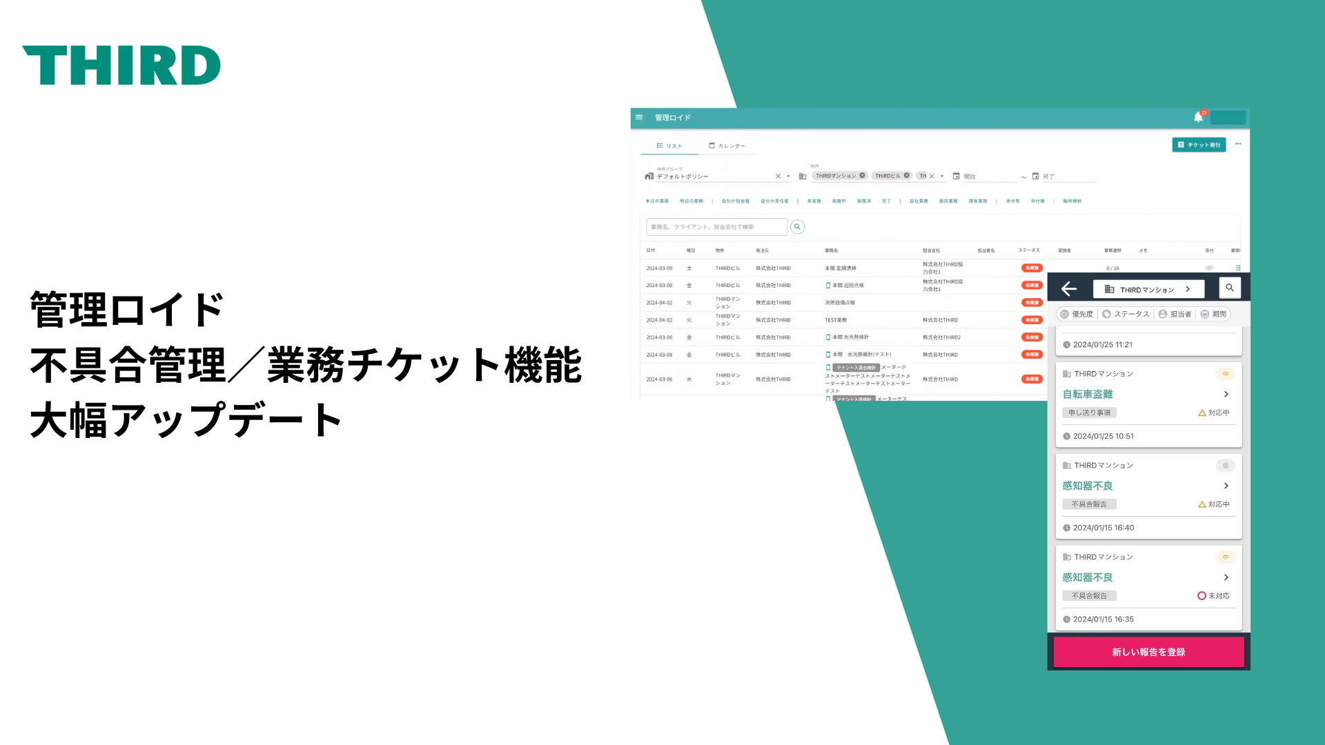 THIRDのAI建物管理クラウドシステム「管理ロイド」の不具合管理/業務チケット機能が大幅アップデート