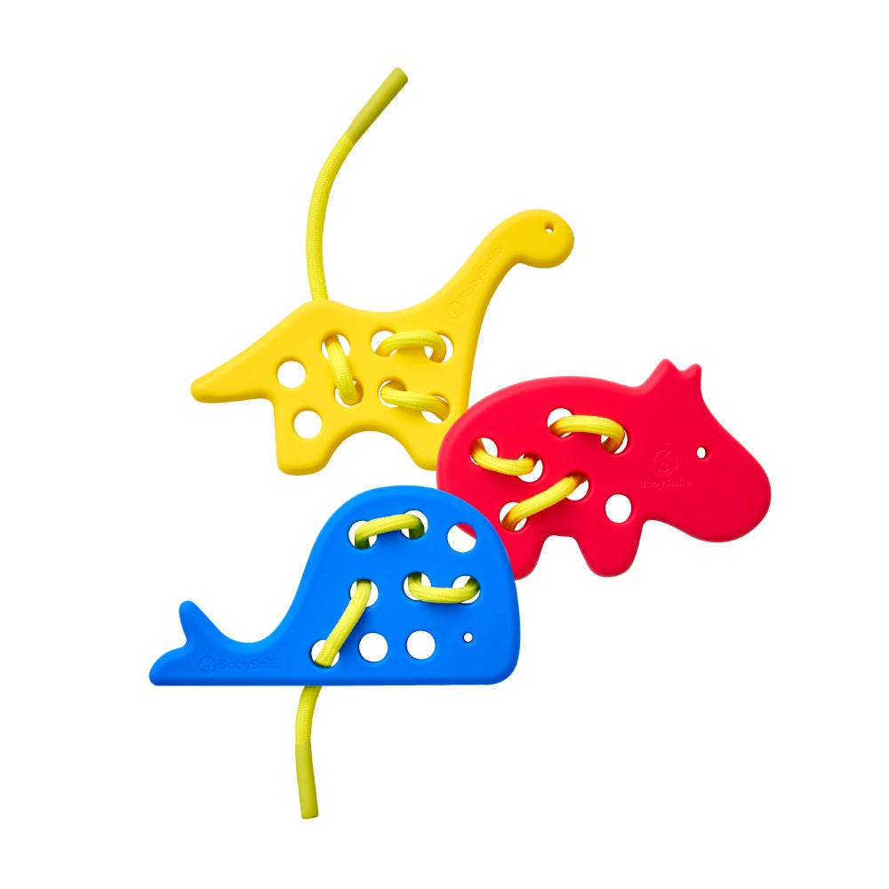 •動物パーツにひもを通して遊ぶことで、指先の細かな動き・空間認識力・順序理解を育成。