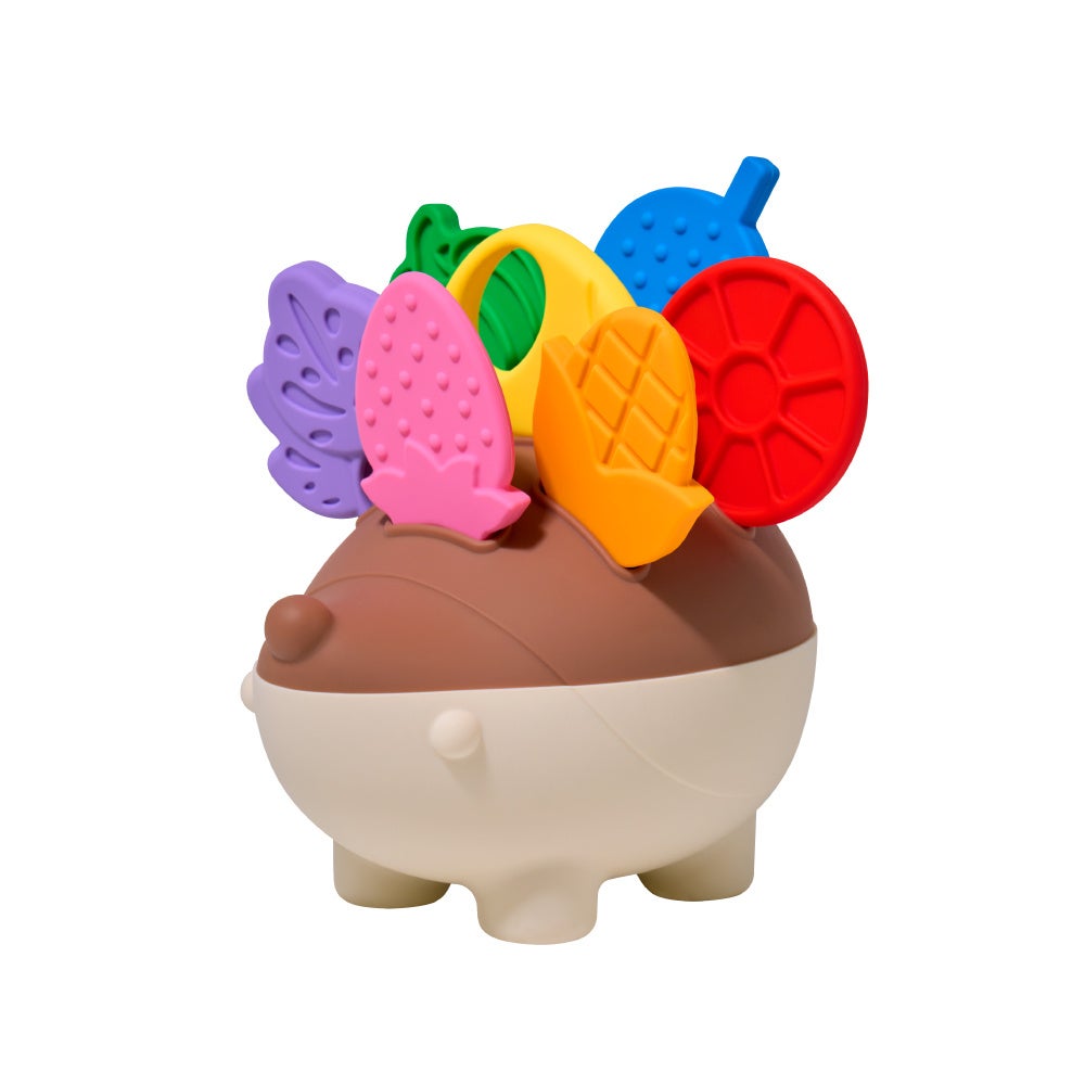 •ハリネズミの背中に食べ物パーツを差し込む遊びで指先の巧緻性・集中力を促進。