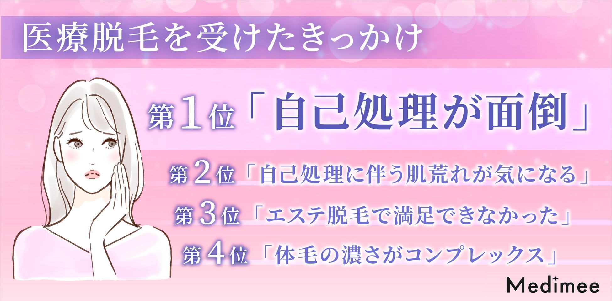 美容医療に関する情報サイト「Medimee」調べで、2024年受けたい美容医療1位に輝いた「医療脱毛」。医療脱毛経験者100名に対して、同サイトが経験者のリアルな声を調査しました。