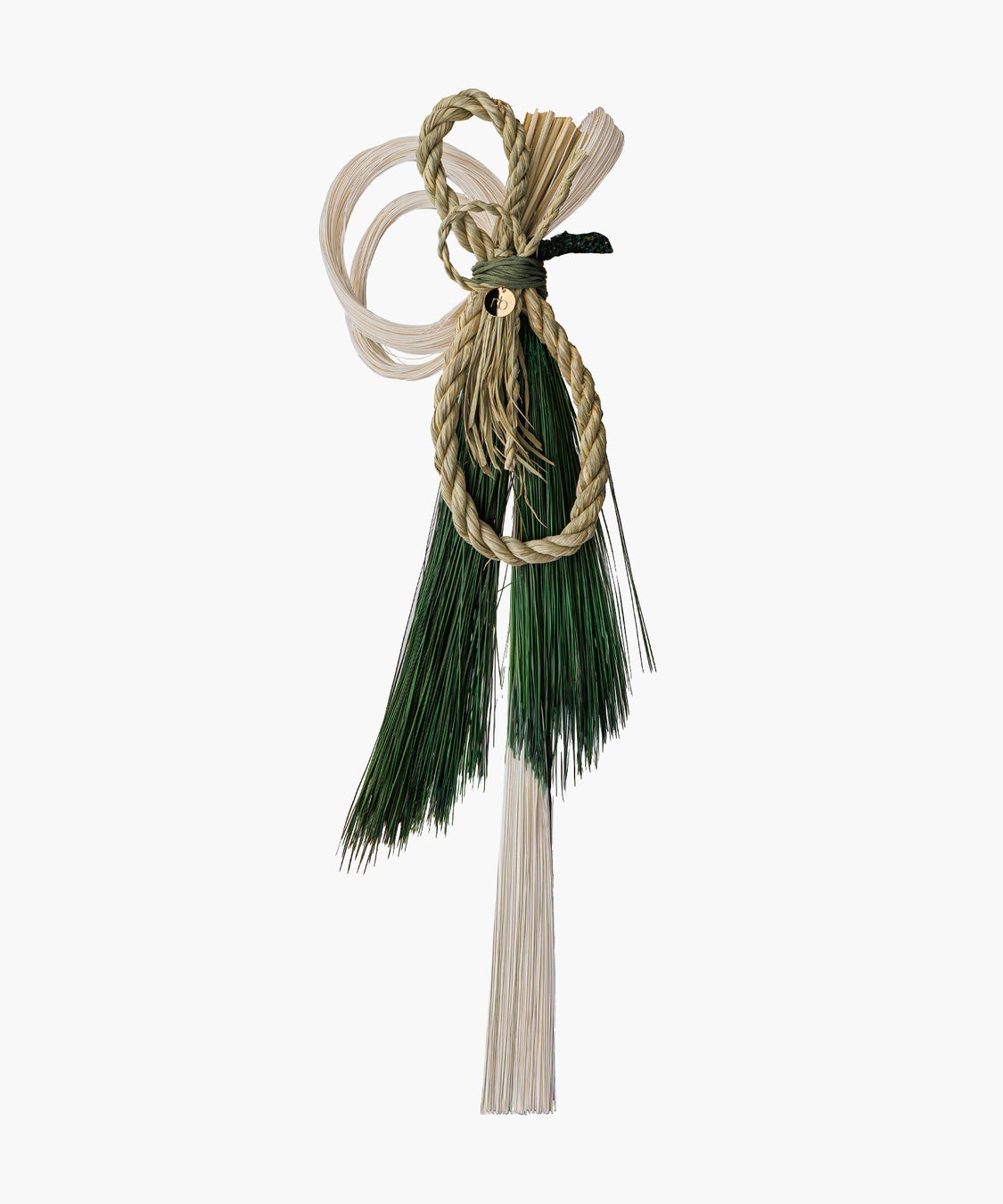 ニコライ バーグマンオリジナルチャームをあしらい、ニコライ バーグマンらしい北欧のニュアンスと和の設えを融合させたデザインに仕上げました。深いグリーンの紐や自然素材の美しさを生かし、シンプルでありながらも存在感のある、他にはない佇まいをお楽しみいただけます。