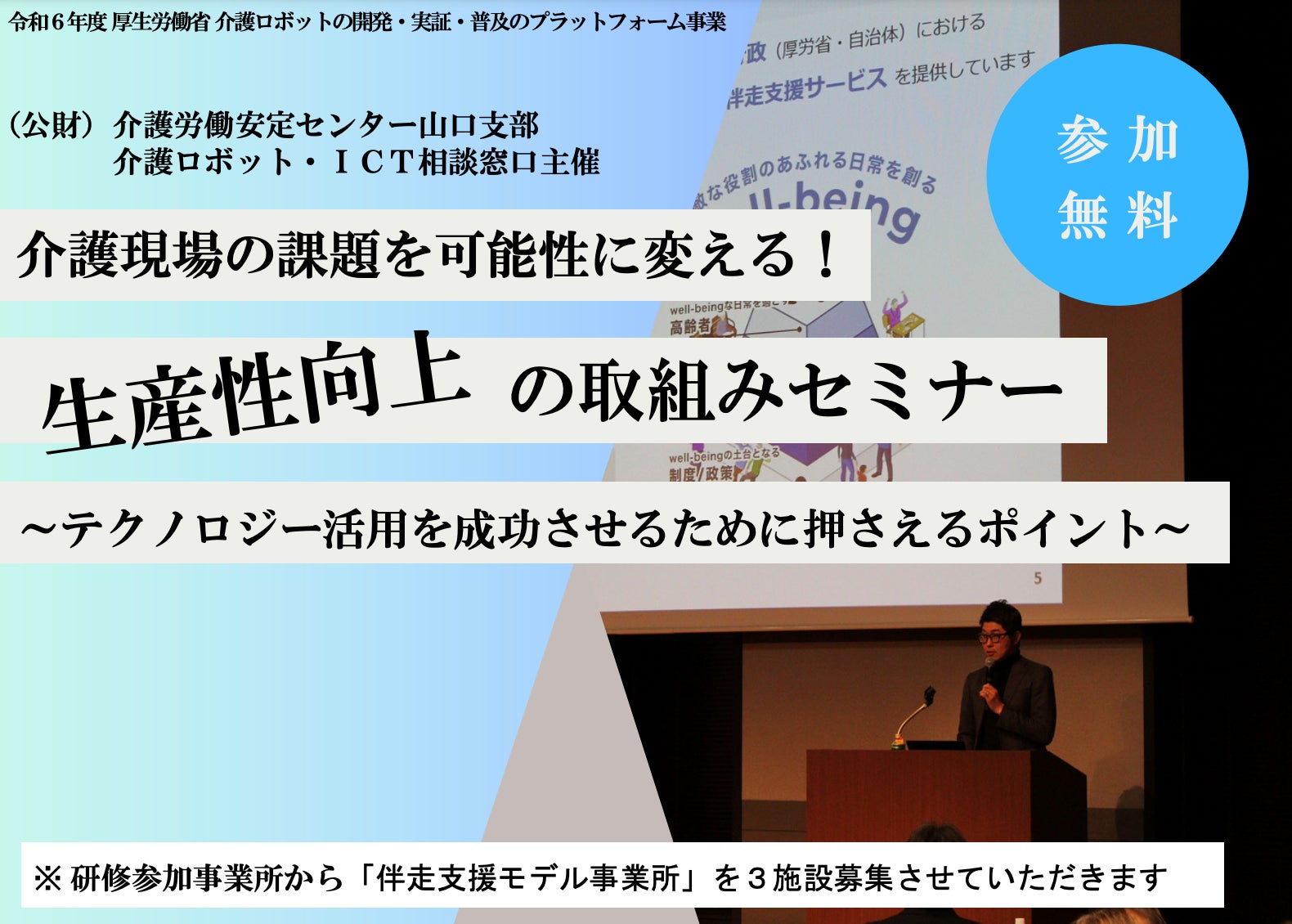 2024年7月26日(金)、令和6年度介護ロボット等の開発・実証・普及広報のプラットフォーム事業山口相談窓口である公益財団法人介護労働安定センター山口支部主催、第1回研修会「介護現場の課題を可能性に変える!生産性向上の取組みセミナー」に代表鎌田が講師として登壇いたします。