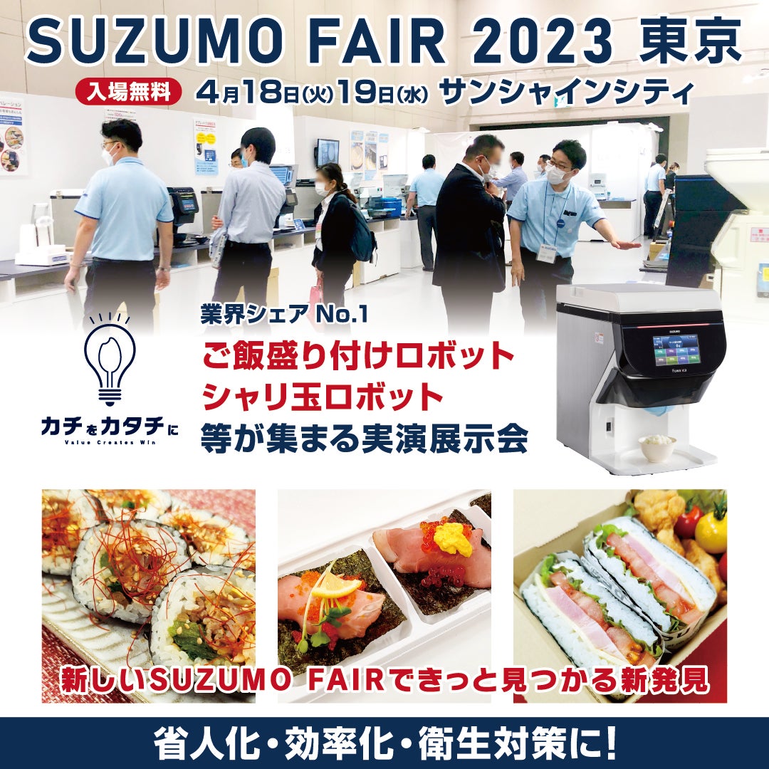 鈴茂器工株式会社(本社:東京都中野区、代表取締役社長:鈴木美奈子、以下 鈴茂器工)は、2023年4月18日(火)、19日(水)の2日間でスズモフェア2023東京【開催地:池袋 サンシャインシティ 文化会館3階 ホールC】を開催。業態別ゾーンに区分けした展示概要をピックアップしてお知らせいたします。ただ今、来場事前予約を受け付け中です。外食・中食・ホテル・給食関係のお客様およびメディア関係者の皆様のご来場予約を心よりお待ちしております。