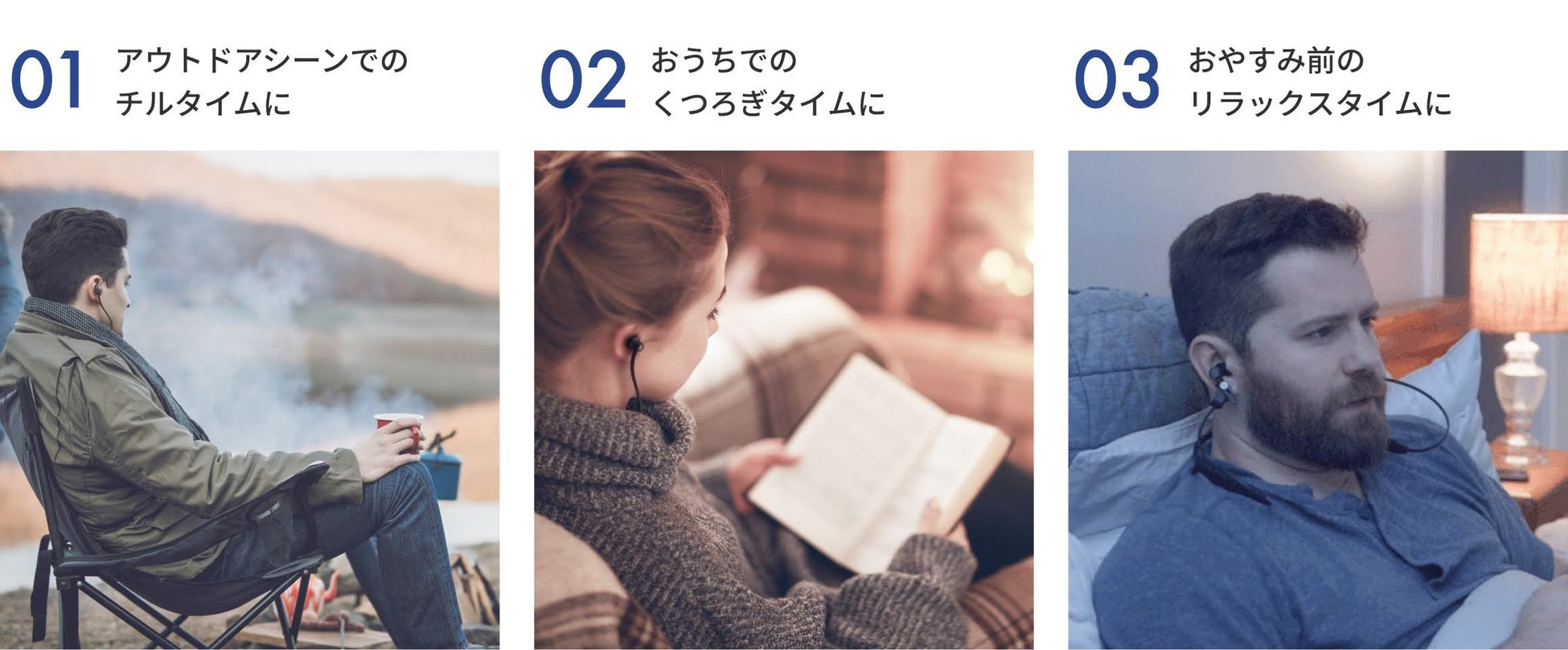 ヨガ、瞑想、キャンプ、アウトドア、電車の中、自宅など…いつでも、どこでも、あなたの脳波を「ととのい」の脳波状態へ導きます。