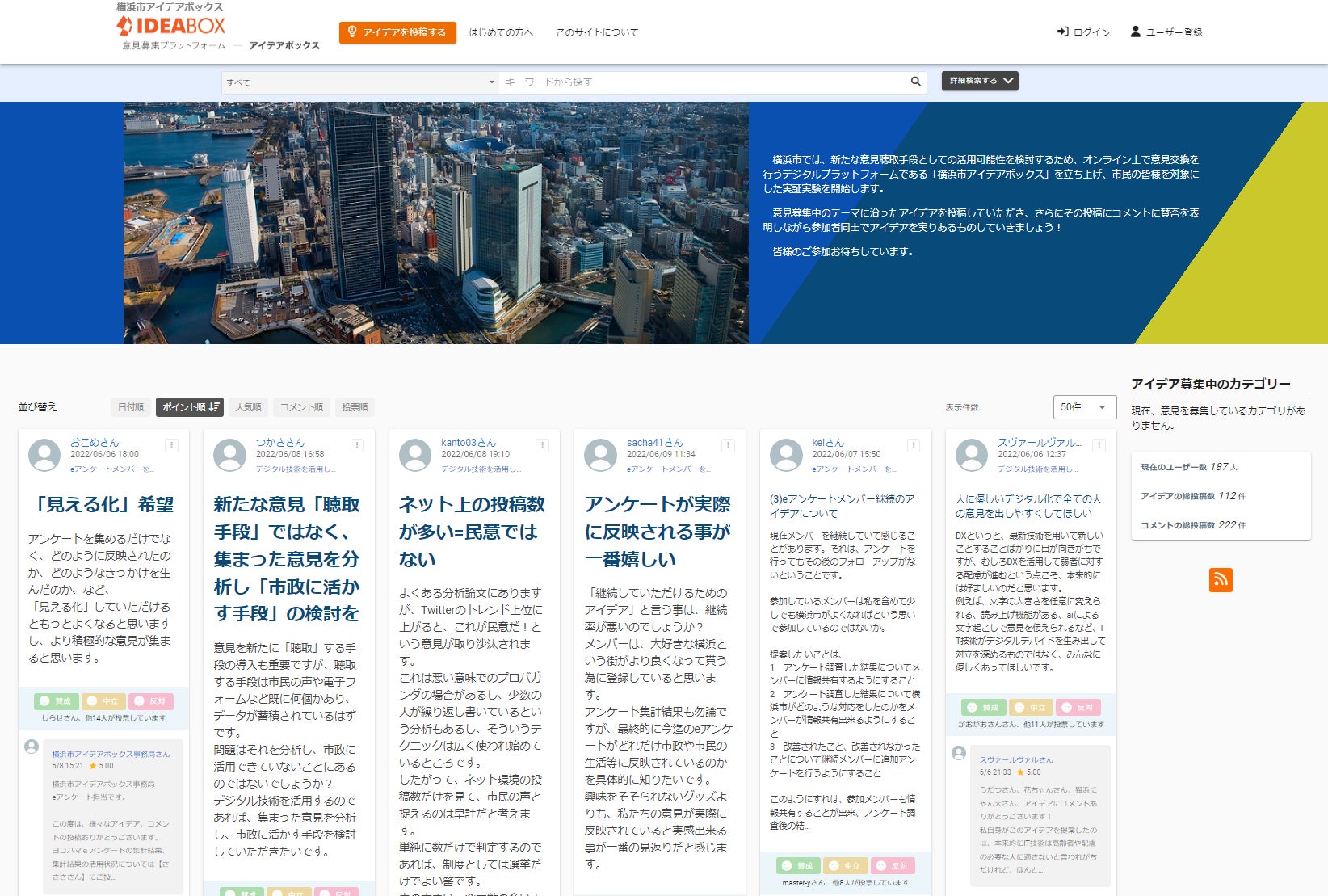 「横浜市アイデアボックス」URL : https://yokohamacity.ideabox.cloud/