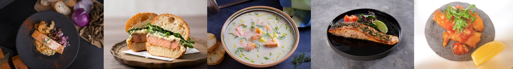 不動の一番人気の寿司ネタのノルウェーサーモン。冷たい料理にも温かい料理にも活躍する万能食材のノルウェーサーモンを贅沢に使った様々な料理を提供いたします。【Salmon Noodle 3.0】からはサーモンラーメン、【リラ・ダーラナ】からは北欧伝統のサーモンスープ、【MONICA】からはサーモンフライバーガー、【Salmon Atelier HUS】からはサーモンステーキ、【ØL La Cabina】からはサーモンタコスを販売いたします。脂の乗りがよく旨みたっぷりのノルウェーサーモンをお楽しみください。