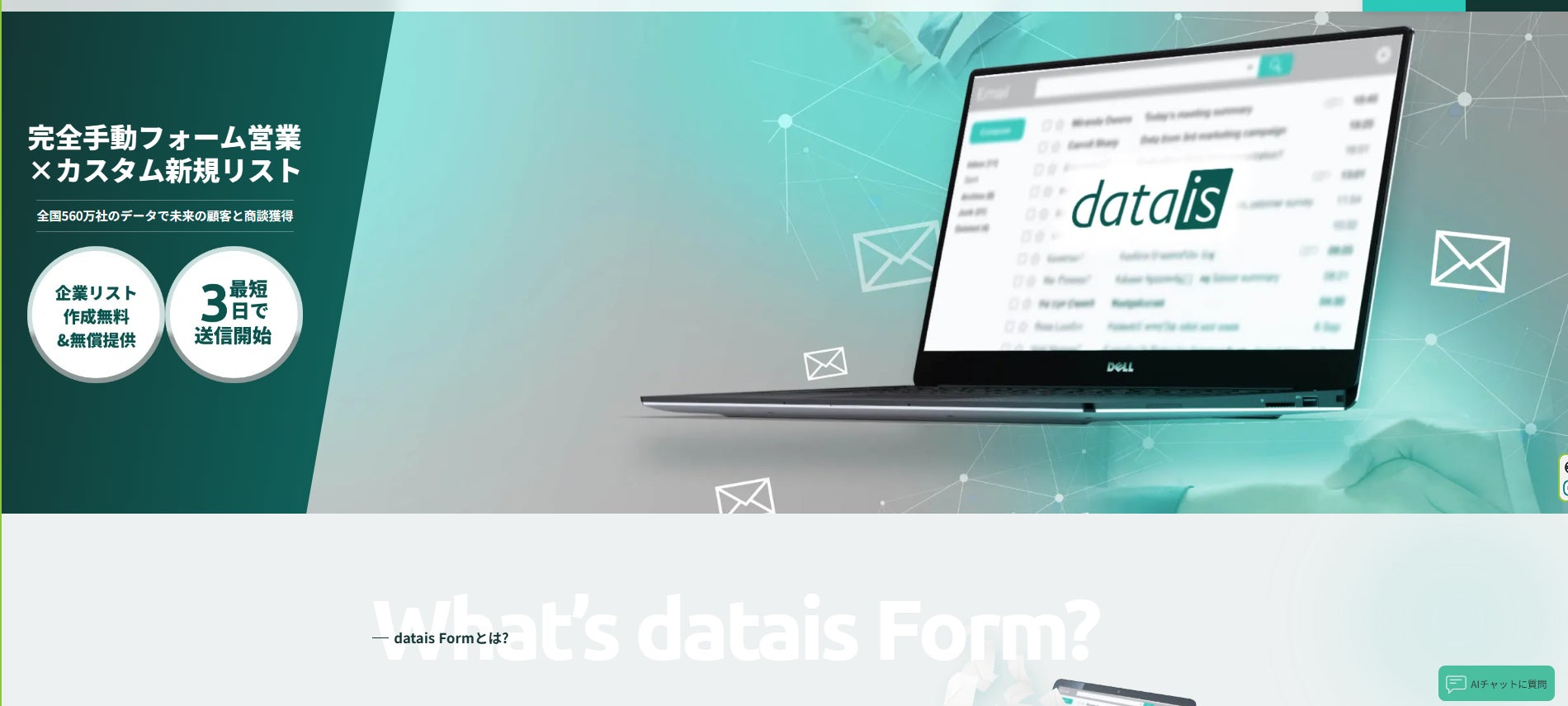 まずはdataisのデータベースをご活用していただくため、今回のコーポレートサイトのリニューアルに伴い、アウトバウンド支援サービス「datais Form」の初期費用無料キャンペーンを実施します。