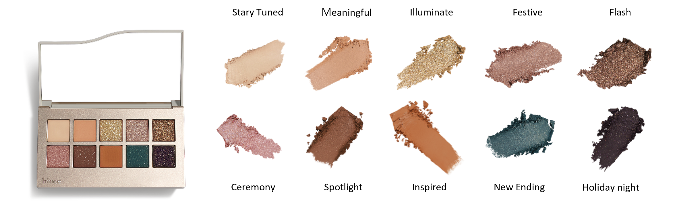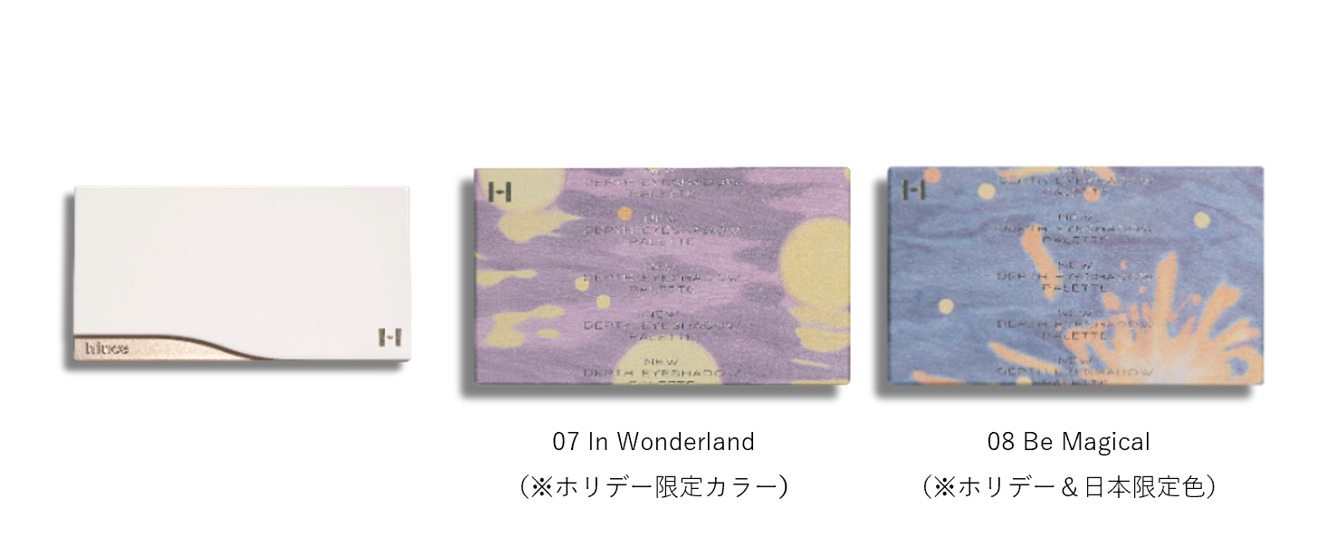 コレクションには、hinceのベストセラーアイテム「ニューデップスアイシャドウパレット」がラインナップ。イルミネーションのように輝くラメやグリッターをふんだんに使ったホリデー限定カラー2種(うち1色は日本限定カラー)を発売します。