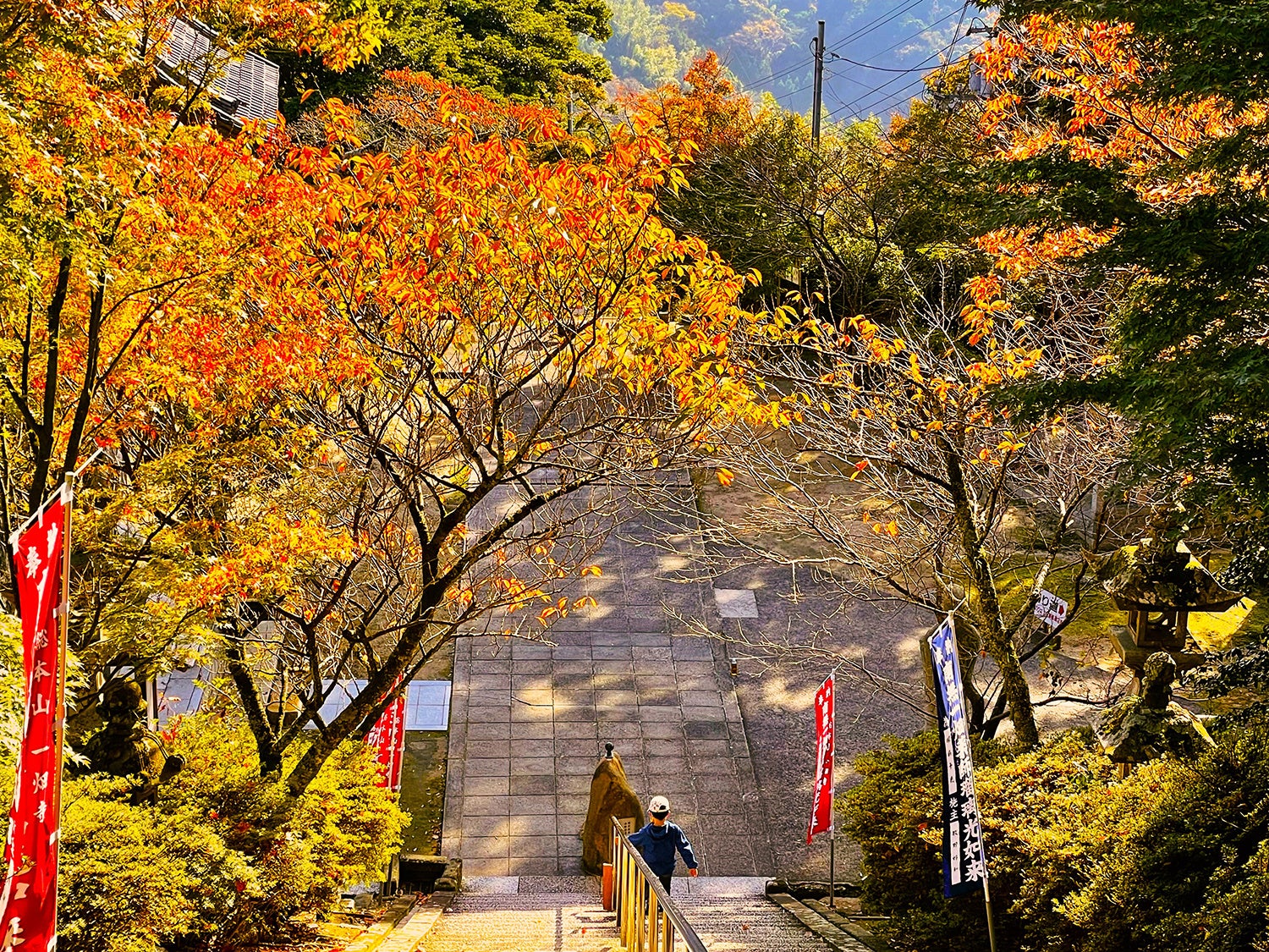 一畑薬師は目のお薬師さまとして全国に信仰が広がる臨済宗の古刹。千百年の歴史ある薬師信仰の総本山として、全国から多くの方が参拝に訪れます。1,300段あまりの石段(参道)も有名で、この石段をかけあがる一畑薬師マラソンは出雲の秋の風物詩となっています。また、同じく出雲市の平田地域に位置する鰐淵寺(がくえんじ)とともに紅葉の名所としても知られています。