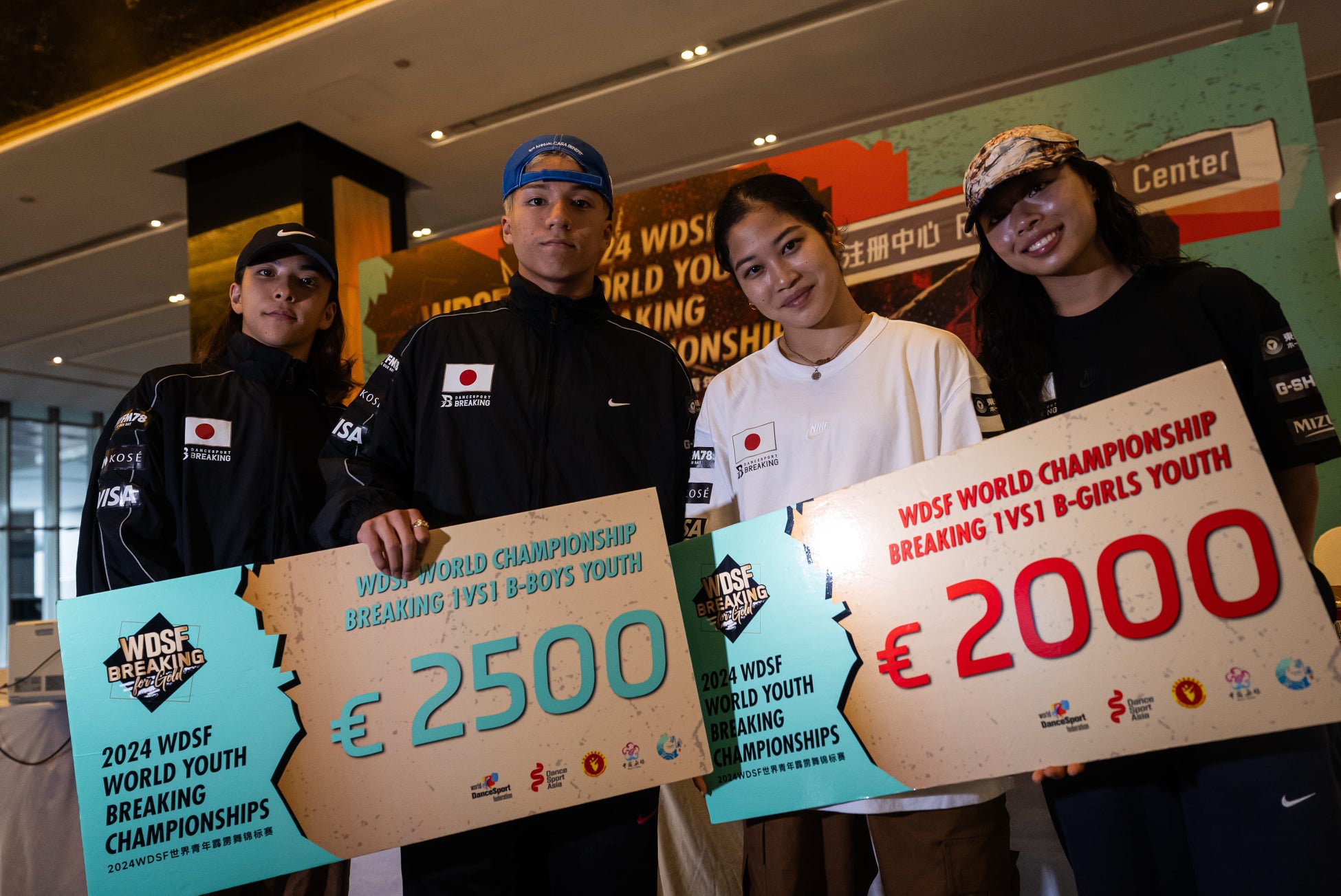 時下ますますご清祥のこととお慶び申し上げます。平素は格別のご高配を賜り、厚く御礼申し上げます。2024年9月28日〜29日に、中国 無錫市(ウーシー)にて、世界ユースブレイキン選手権が開催されました。2018年以来6年ぶりに開催されたユース世界選手権には、38ヵ国から200名以上の選手が参加し熾烈な幕開けとなりました。本大会には日本代表として6月に開催された選考会を通過した4名の強化選手が参加したほか、オープン大会でもあったため令和6年度 強化選手を含む9名の日本人選手が出場をしました。予選となった初日は、6名の女子選手と3名の男子選手がDAY2へ駒を進め、金メダルを獲得したRA1ON以外にも、女子のRIKOが銀メダル、HIOが銅メダルを獲得し3名の選手が表彰台にあがる結果となりました。