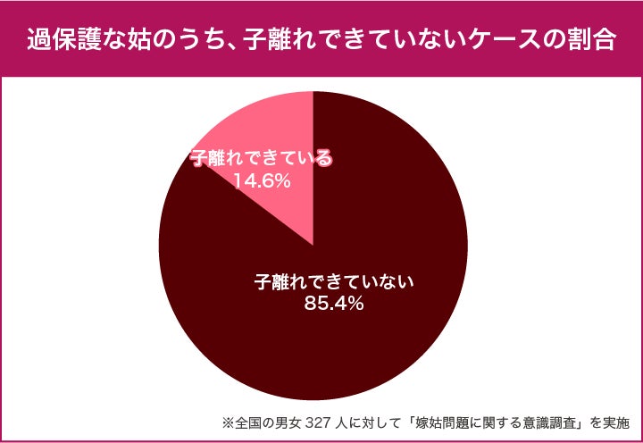 先述の「嫁姑問題の原因ランキング」で『姑が過保護すぎる』と回答した人のうち、8割以上が「姑が子離れできていない」と感じていることが明らかになりました。