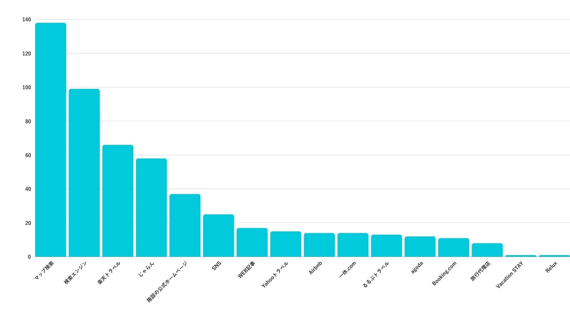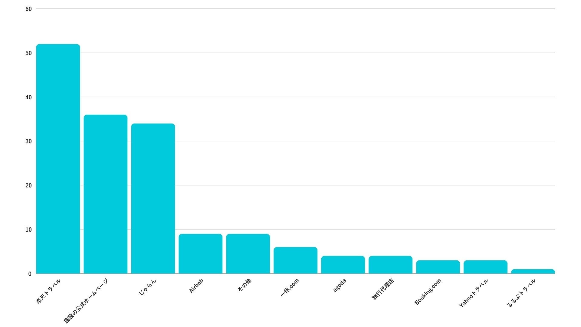 なかでも、サイト利便性が高くてポイント特典のある「大手旅行サイト」や、情報の信頼性の高い「公式ホームページ」は人気ですが、その他の予約サイトは、「Airbnb」や「Booking.com」などのように自社の強みを明確にし、ターゲット層を絞り込むことで独自のポジションを確立できる可能性があります。