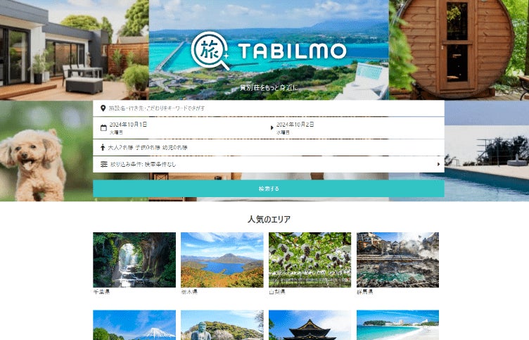 TABILMO(タビルモ)は、東京都恵比寿に本社を構える鵜山リゾート株式会社が運営するオンライン宿泊予約サイトです。全国の貸別荘、コテージ、ヴィラ、民泊施設など、一棟貸しの宿泊施設を多数掲載しています。サウナ付きの貸別荘やBBQが楽しめる施設、ペット同伴OK、大人数での宿泊が可能な施設など、さまざまな条件で検索できるため、ご希望の施設が見つけやすいのが大きな魅力です。全国で貸別荘をお探しの際は、ぜひTABILMOをご活用ください。