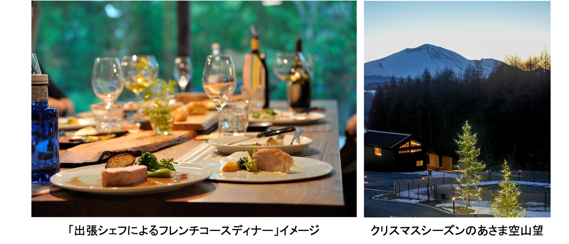 軽井沢で人気の出張専門シェフによる1日1組限定フレンチディナーを初提供北軽井沢のプライベートヴィラリゾートあさま空山望、天然もみの木が香るクリスマスプランを11/1(金)より予約販売開始