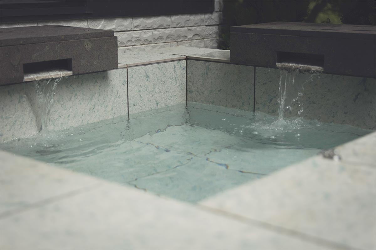 造作した露天風呂はいつでも楽しめるため、日中は木々の揺れる中でリラックスしながら…