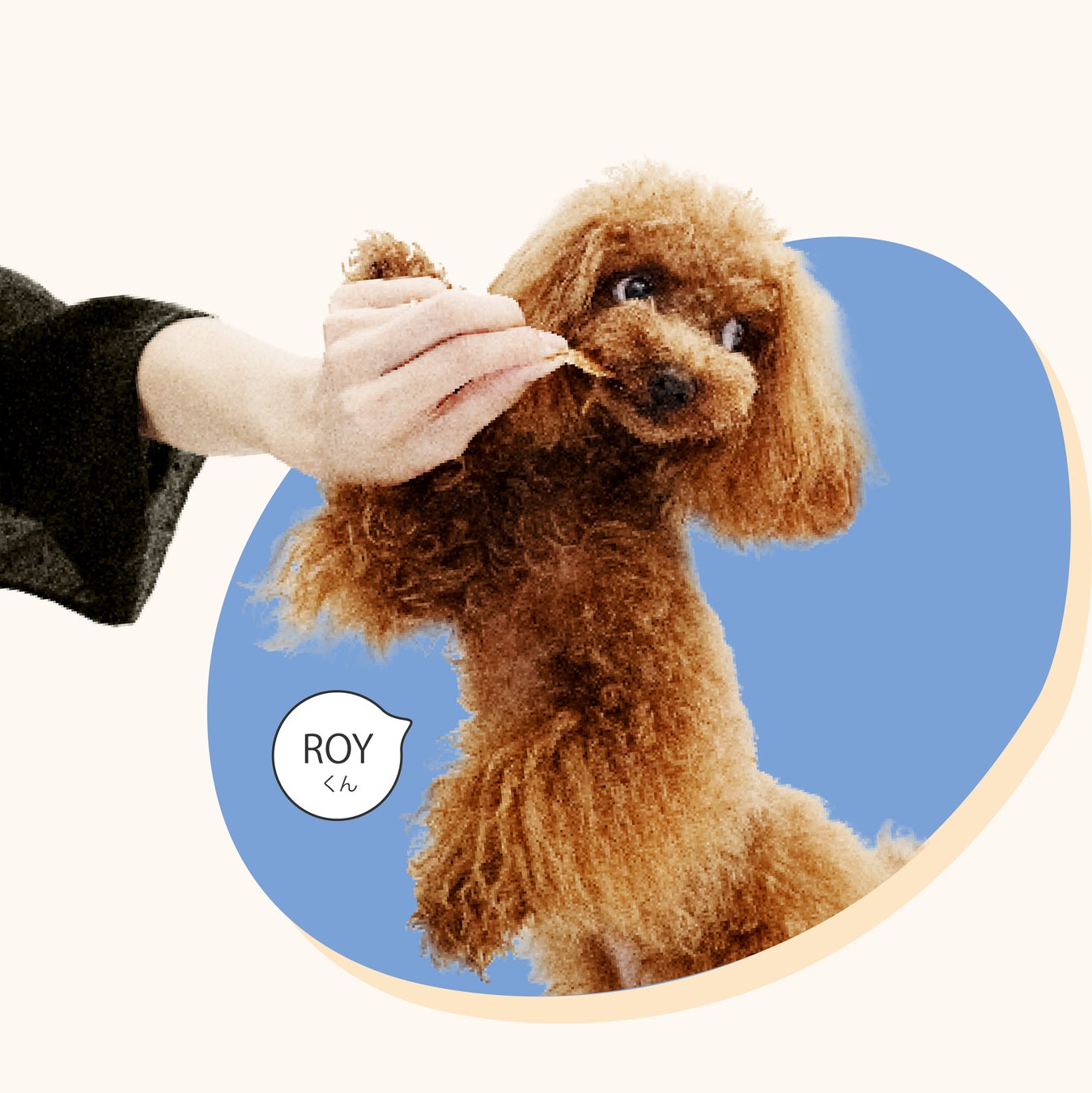 市場に多く見られる「嗜好性は高いが健康への配慮が不十分なおやつ」「犬や猫用だから簡易的な包装」に対し、私たちは疑問を抱き、家族として毎日続けて与えられる「健康」で「品質」のよい、犬にも猫にも人にも「やさしいおやつ」として開発しました。