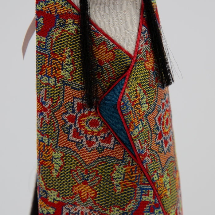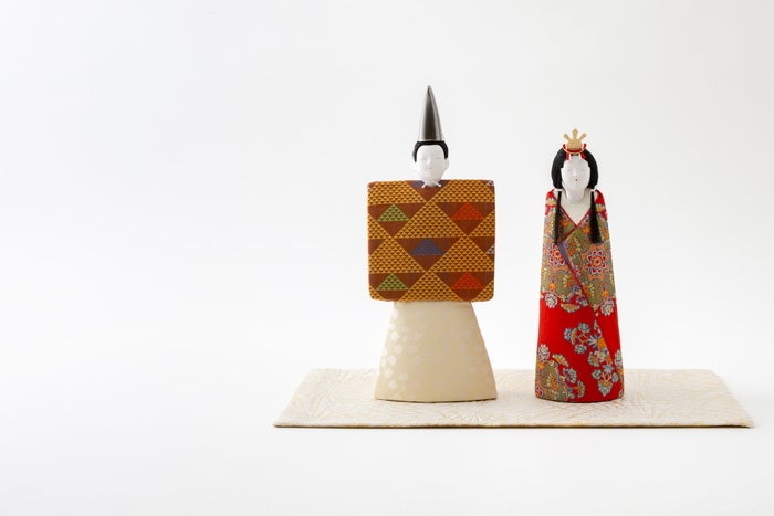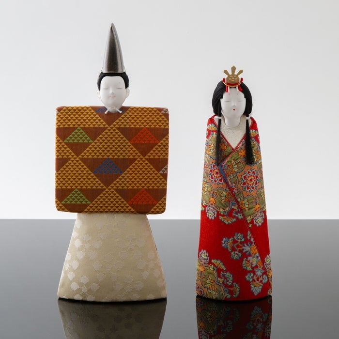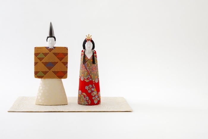 そこに、龍村美術織物が持つ「桃の節句」にふさわしい美麗な錦(にしき)がマッチングすることで、新たなコラボレーション作品「Simple Modern hina」が誕生しました。織(おり)の美しさと人形作家の卓越した技が生み出す、伝統と革新性を兼ね備えた新時代のひな人形をお楽しみ下さい。