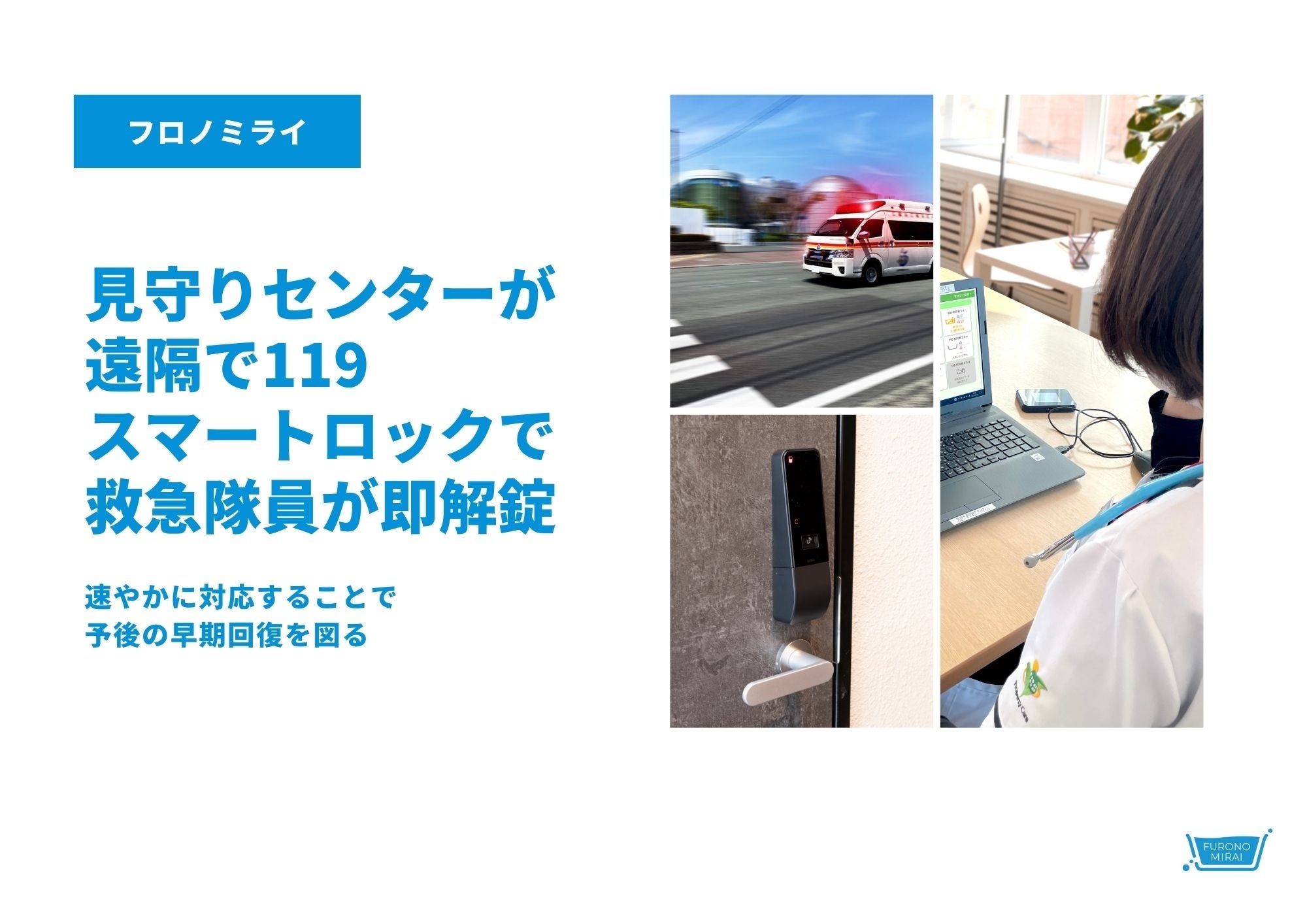 2.見守りセンターから鍵を遠隔・一時的に解錠するシステムにより、救急隊員の入室と早期搬送を可能としたこと