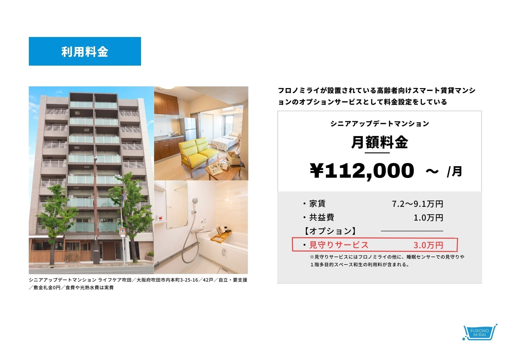 いま、このフロノミライは当社の運営するシニアアップデートマンションに設置し、見守りセンターも自社運営の介護事業所を活用しています。今後、このフロノミライやシニアアップデートマンションで導入している見守りシステムを、クラウドを活用することで自宅向けにも展開できれば、サービス自体を拡げることができ、在宅の一人暮らしの高齢者の入浴や暮らしがますます安全になるでしょう。