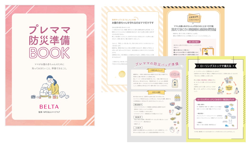 災害をなくすことはできませんが、事前に防災準備をしておくだけでも不安を軽減することができます。女性ライフステージの課題解決に取り組むBELTAは、SDGs活動の一環として、アクティブ防災を提唱し活動するNPO法人ママプラグ監修のもと「プレママ防災準備BOOK」を制作しました。