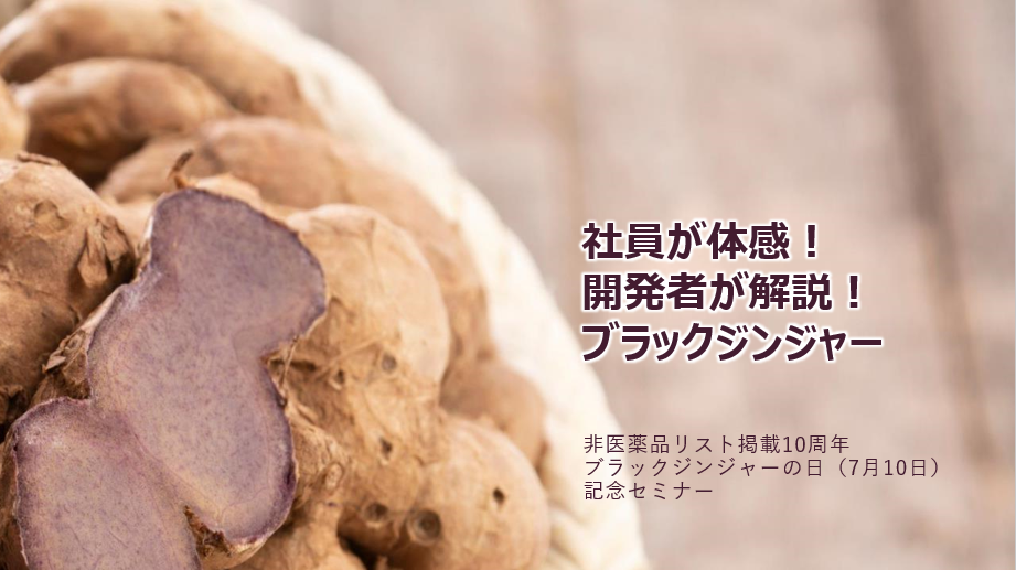 ブラックジンジャーの日を目前に控えた7月7日に、ブラックジンジャーの機能や、実際にブラックジンジャー配合のサプリメントを利用した、健康チャレンジの様子をお伝えするオンラインセミナーを開催し、100社を超える多くの方々に参加いただきました。
