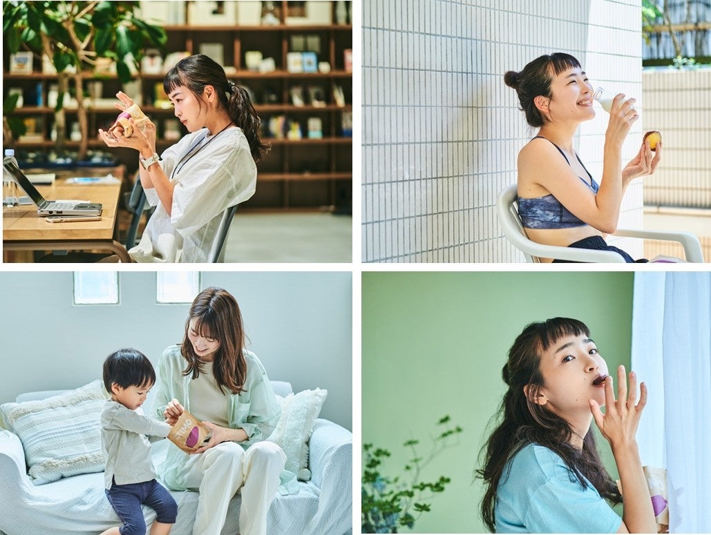 食べやすさも加味し、おイモのカッティングにもこだわりました。また、持ち運びに便利なコンパクト&ジップ付きパッケージは日常シーンで大活躍。“ととのう”の象徴であるサウナをはじめ、仕事の合間、小腹がすいたおやつの時間、運動前後の栄養・エネルギー補完、食事の前のGI値コントロールなど、あらゆるシーンに寄り添います。