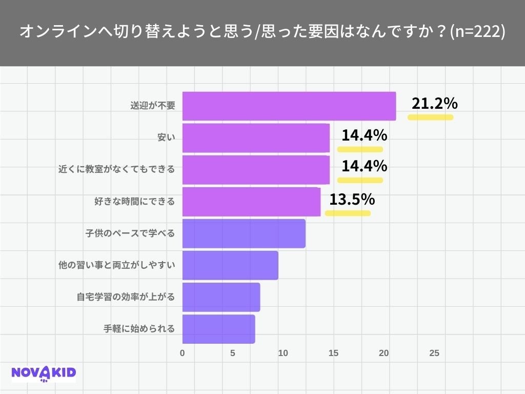 送迎不要で安いがオンラインの習い事への切り替え要因