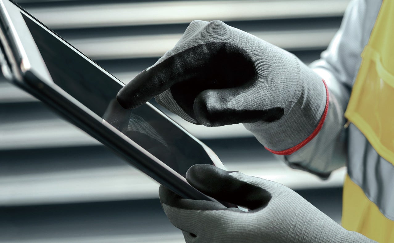建築業界では、人材不足や長時間労働の改善を目指し、業務効率化のため業界全体でDX化が進んでいます。安全のために耐切創手袋の着用が推奨される一方で、スマホやタブレット操作時には外す必要があり、安全性と作業効率が低下してしまうという課題がありました。安全性の確保と業務効率化を両立するためには、耐切創手袋を着用したままタッチパネル操作が可能な手袋が必要でした。