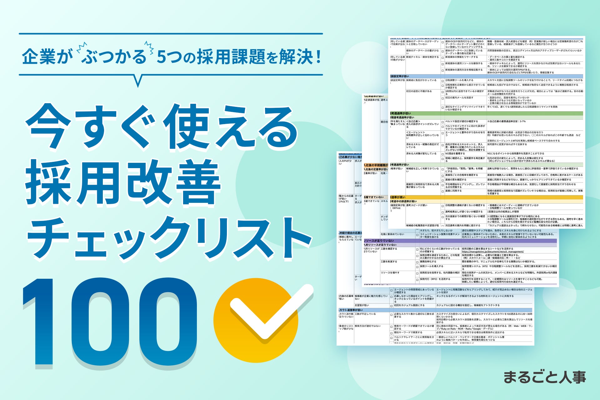 「今すぐ使える採用改善チェックリスト100」を公開!「まるごと人事」の計480社以上の実績から生まれた、人事のための実践シート