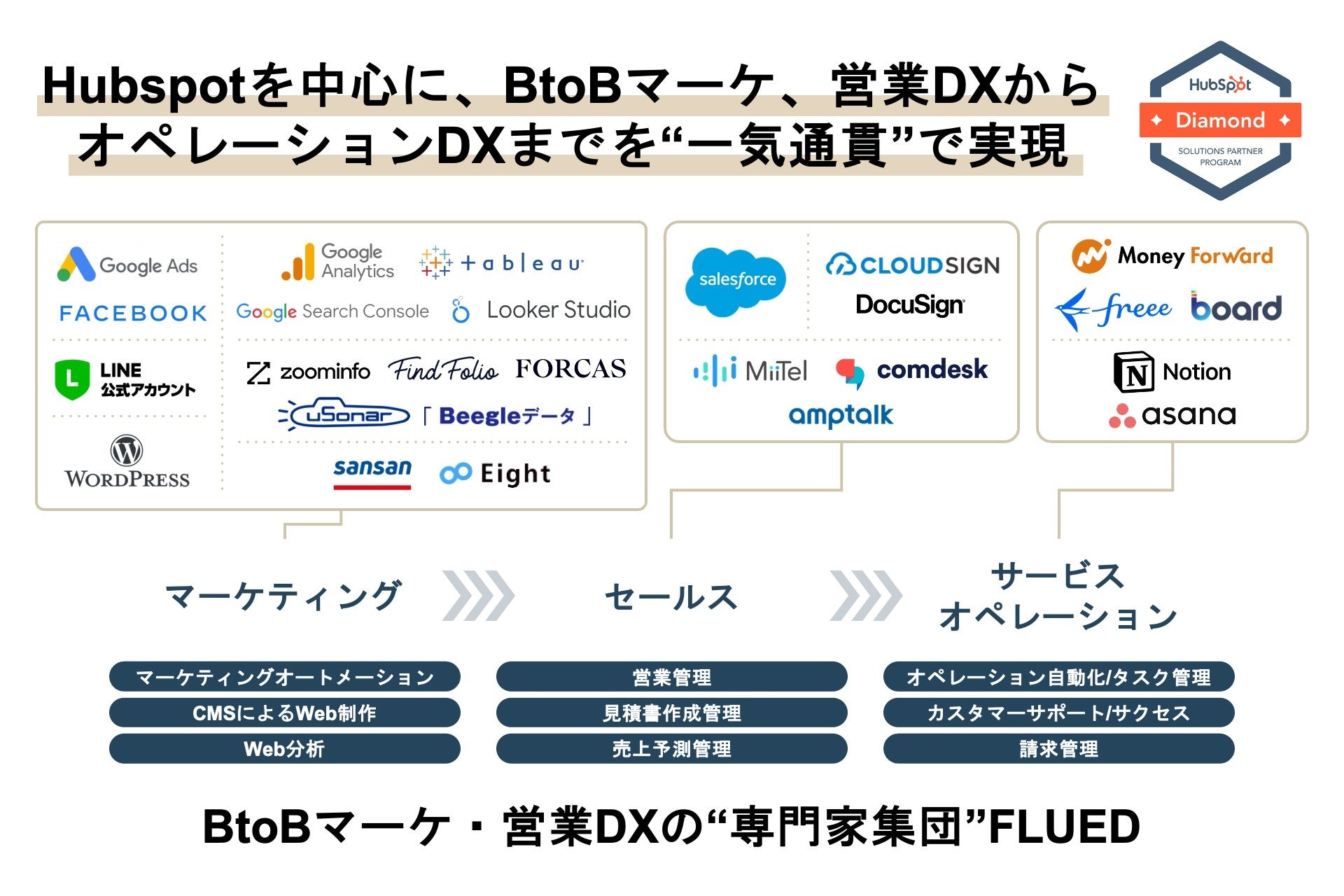 BtoBマーケ・営業DX支援の㈱FLUED、現在国内2社のみとなるHubSpot社のDiamondパートナーに認定