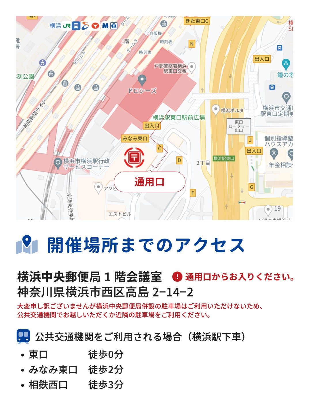 場所 横浜中央郵便局 神奈川県横浜市西区高島2-14-2