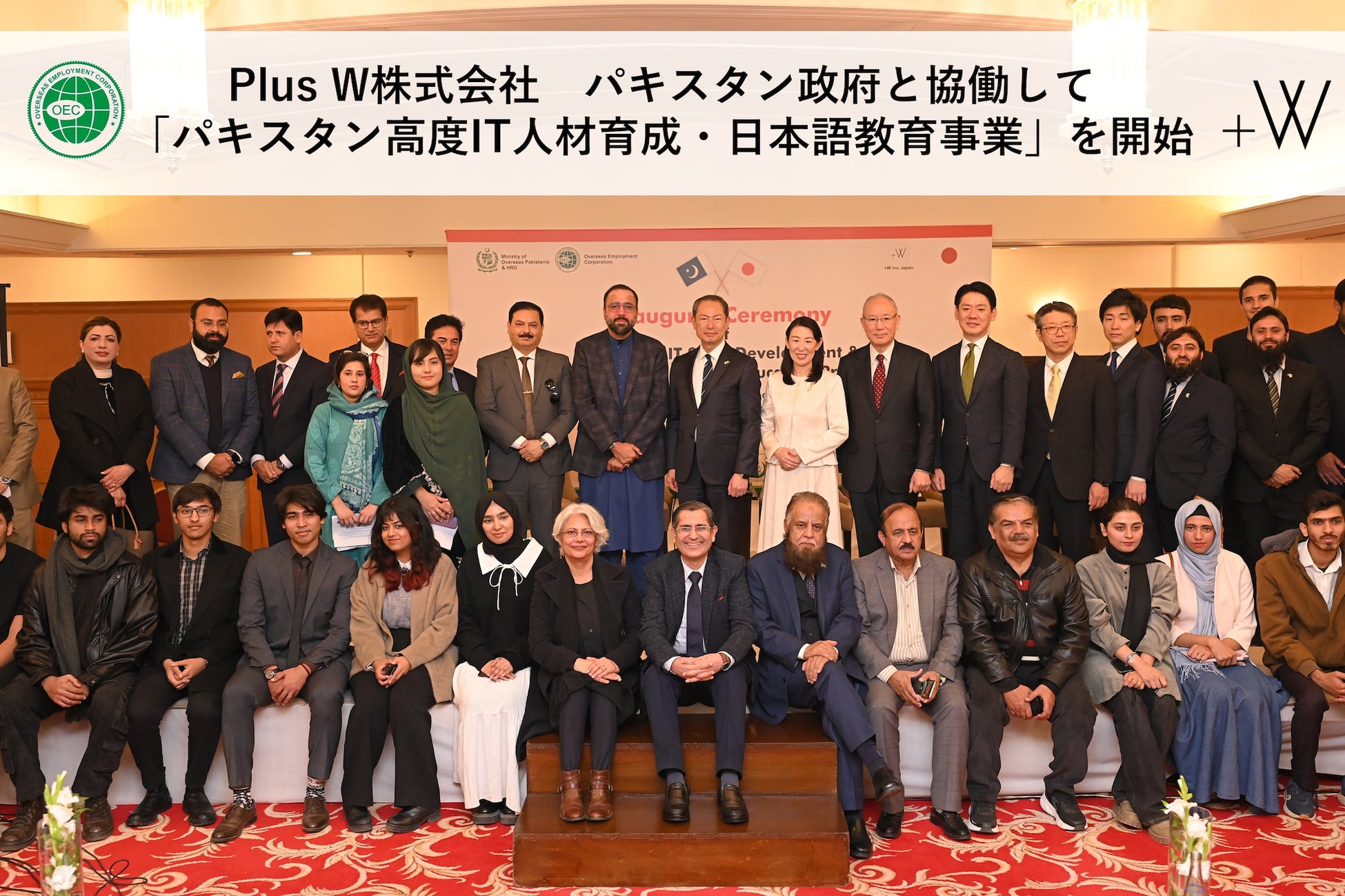 Plus W株式会社(代表取締役社長:櫻井稚子)は、パキスタン政府海外雇用公社(Overseas Employment Corporation)(以下、海外雇用公社という)と連携し、パキスタンの高度IT人材を日本企業へ送出する新事業、「パキスタン高度IT人材育成・日本語教育事業」を2025年1月10日より開始しました。このプログラムは、パキスタンの大学生を対象に、日本のIT領域で活躍するための高度なITスキルと日本語を提供し、日本への就業を促進することを目指しています。